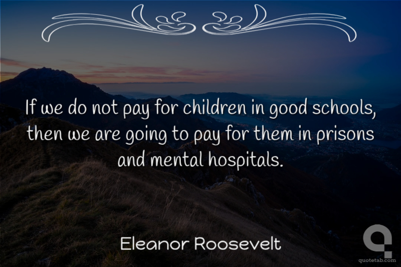 If we do not pay for children in good schools, then we are going to pay for them in prisons and mental hospitals.