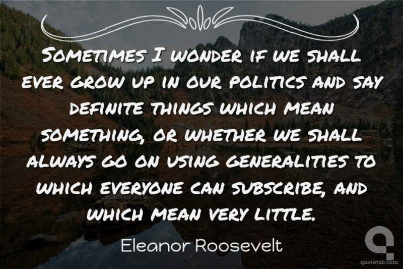Sometimes I wonder if we shall ever grow up in our politics and say definite things which mean something, or whether we shall always go on using generalities to which everyone can subscribe, and which mean very little.