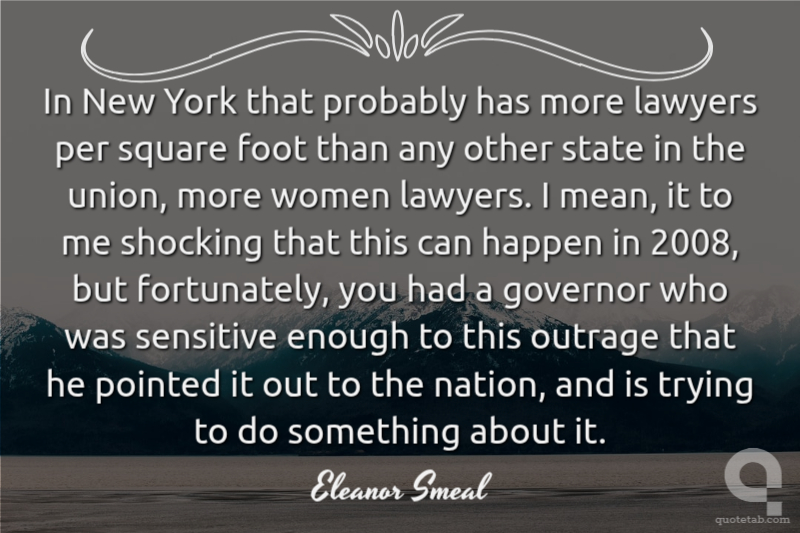 In New York that probably has more lawyers per square foot than any other state in the union, more women lawyers. I mean, it to me shocking that this can happen in 2008, but fortunately, you had a governor who was sensitive enough to this outrage that he pointed it out to the nation, and is trying to do something about it.