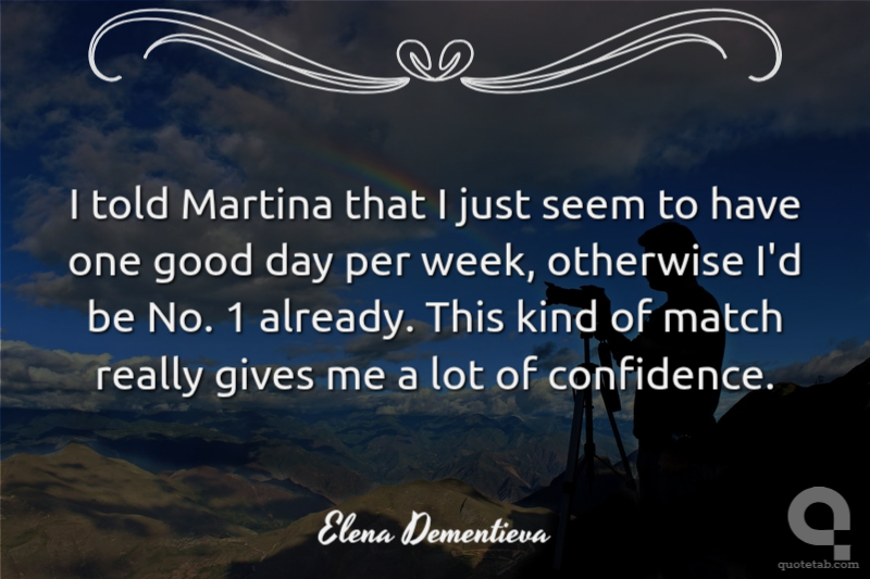 I told Martina that I just seem to have one good day per week, otherwise I'd be No. 1 already. This kind of match really gives me a lot of confidence.