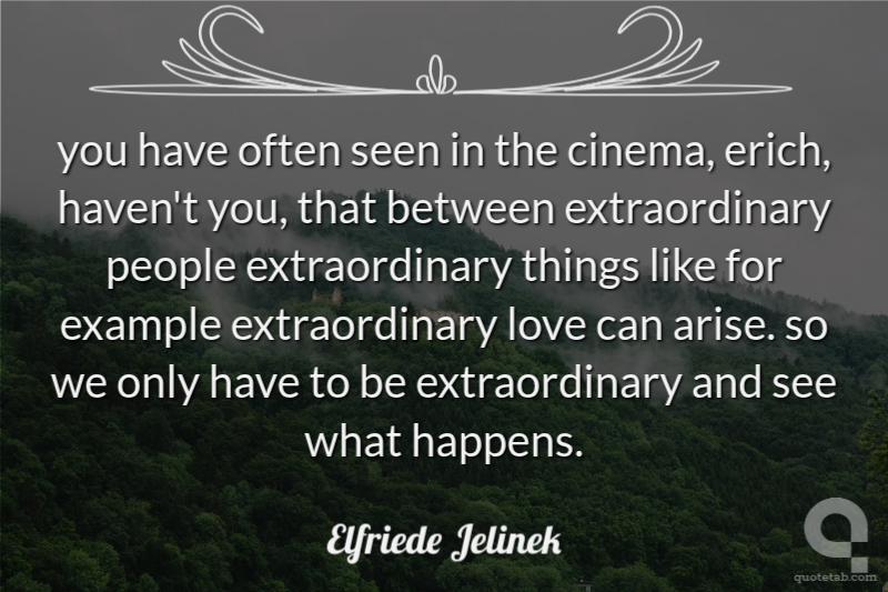 you have often seen in the cinema, erich, haven't you, that between extraordinary people extraordinary things like for example extraordinary love can arise. so we only have to be extraordinary and see what happens.