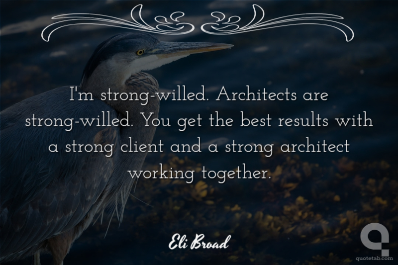 I'm strong-willed. Architects are strong-willed. You get the best results with a strong client and a strong architect working together.