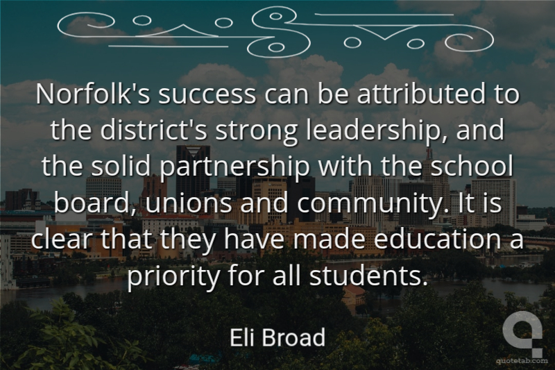 Norfolk's success can be attributed to the district's strong leadership, and the solid partnership with the school board, unions and community. It is clear that they have made education a priority for all students.