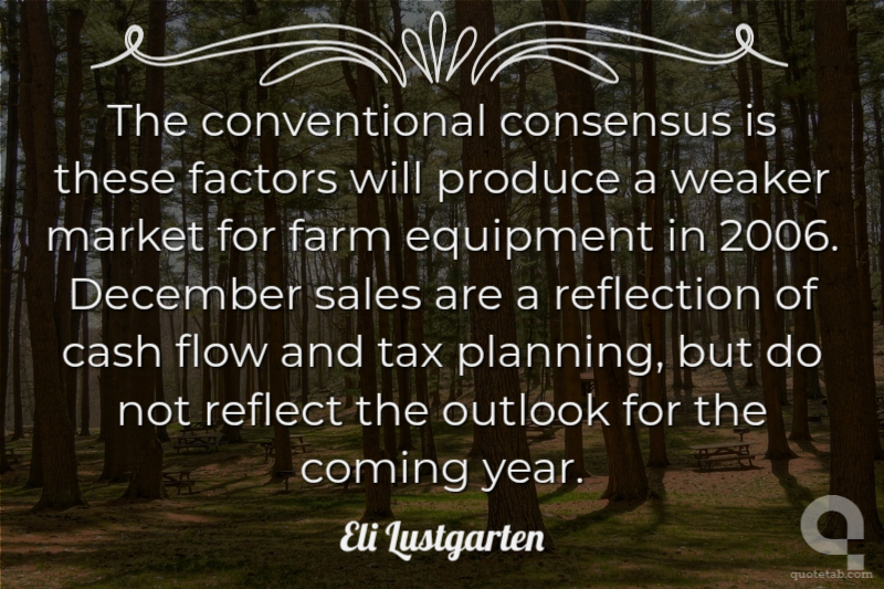 The conventional consensus is these factors will produce a weaker market for farm equipment in 2006. December sales are a reflection of cash flow and tax planning, but do not reflect the outlook for the coming year.