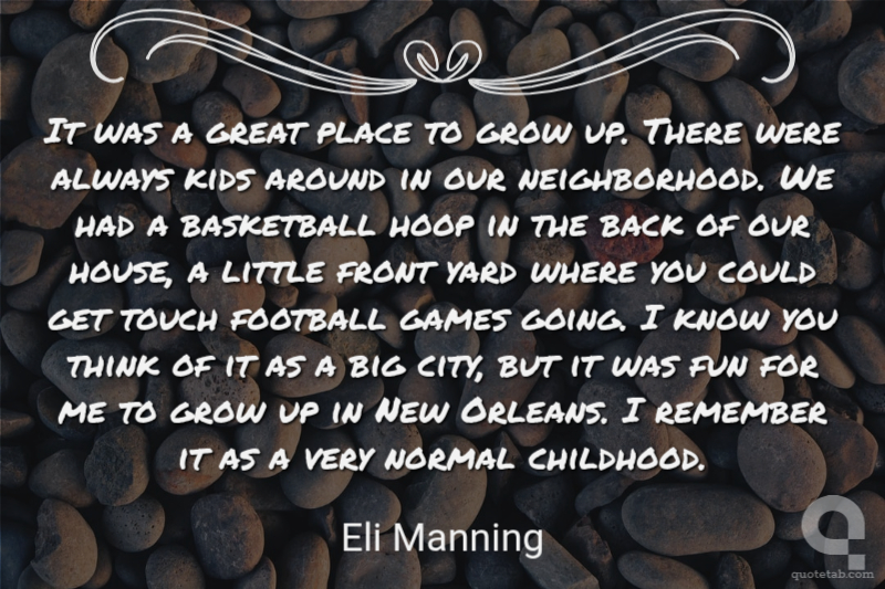 It was a great place to grow up. There were always kids around in our neighborhood. We had a basketball hoop in the back of our house, a little front yard where you could get touch football games going. I know you think of it as a big city, but it was fun for me to grow up in New Orleans. I remember it as a very normal childhood.