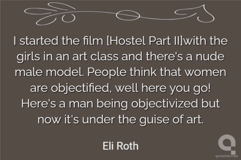 I started the film [Hostel Part II]with the girls in an art class and there's a nude male model. People think that women are objectified, well here you go! Here's a man being objectivized but now it's under the guise of art.