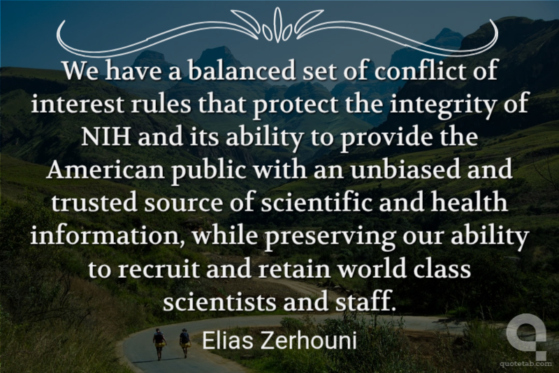 We have a balanced set of conflict of interest rules that protect the integrity of NIH and its ability to provide the American public with an unbiased and trusted source of scientific and health information, while preserving our ability to recruit and retain world class scientists and staff.