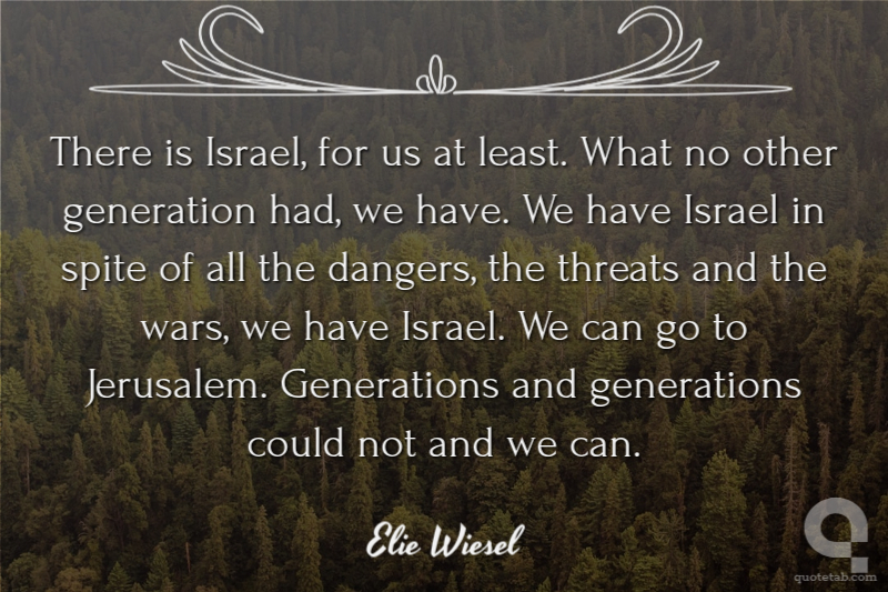 There is Israel, for us at least. What no other generation had, we have. We have Israel in spite of all the dangers, the threats and the wars, we have Israel. We can go to Jerusalem. Generations and generations could not and we can.