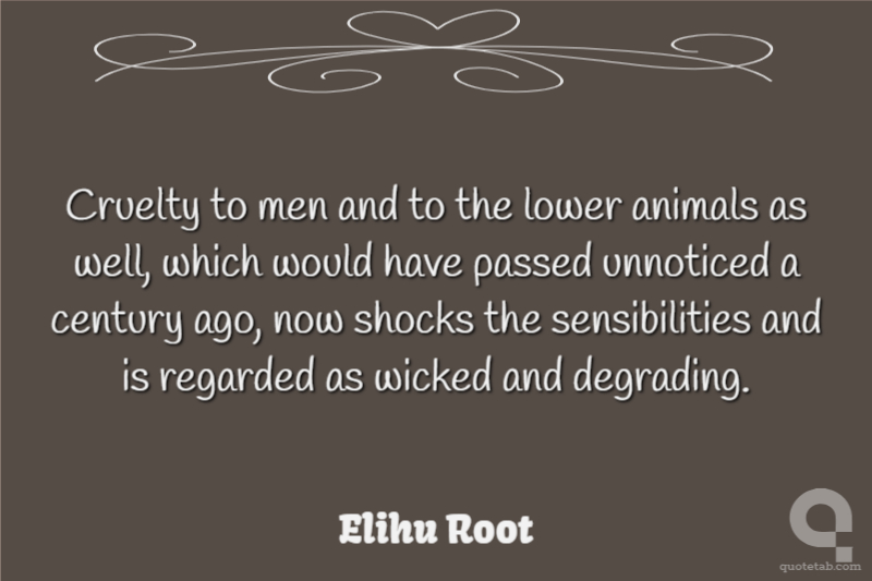 Cruelty to men and to the lower animals as well, which would have passed unnoticed a century ago, now shocks the sensibilities and is regarded as wicked and degrading.