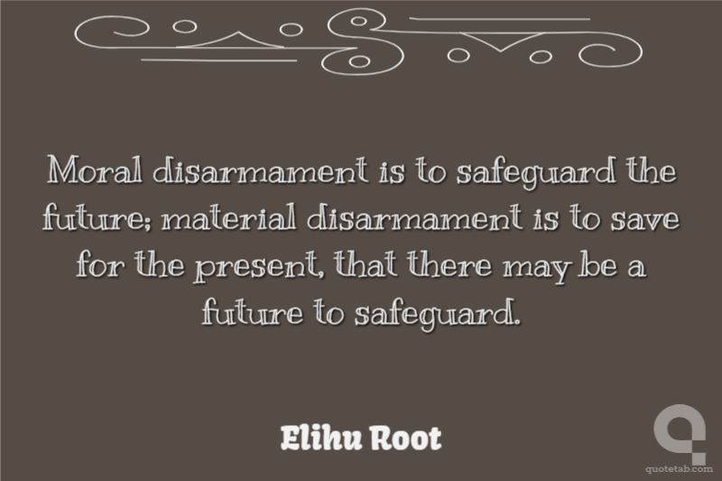 Moral disarmament is to safeguard the future; material disarmament is to save for the present, that there may be a future to safeguard.
