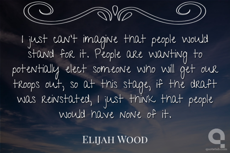 I just can't imagine that people would stand for it. People are wanting to potentially elect someone who will get our troops out, so at this stage, if the draft was reinstated, I just think that people would have none of it.
