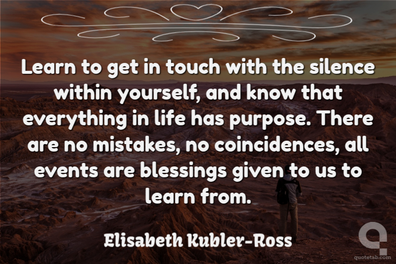 Learn to get in touch with the silence within yourself, and know that everything in life has purpose. There are no mistakes, no coincidences, all events are blessings given to us to learn from.