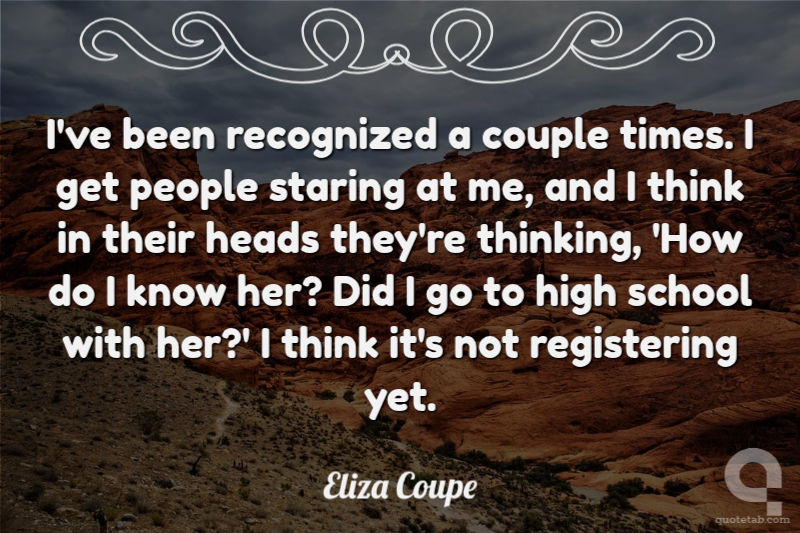 I've been recognized a couple times. I get people staring at me, and I think in their heads they're thinking, 'How do I know her? Did I go to high school with her?' I think it's not registering yet.