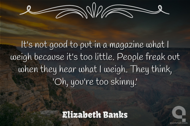 It's not good to put in a magazine what I weigh because it's too little. People freak out when they hear what I weigh. They think, 'Oh, you're too skinny.'