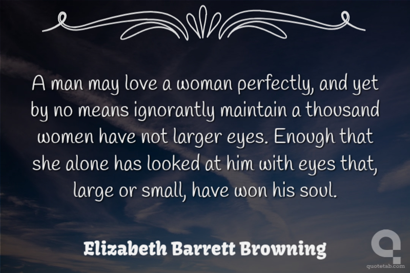A man may love a woman perfectly, and yet by no means ignorantly maintain a thousand women have not larger eyes. Enough that she alone has looked at him with eyes that, large or small, have won his soul.