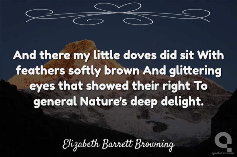 And there my little doves did sit With feathers softly brown And glittering eyes that showed their right To general Nature's deep delight.