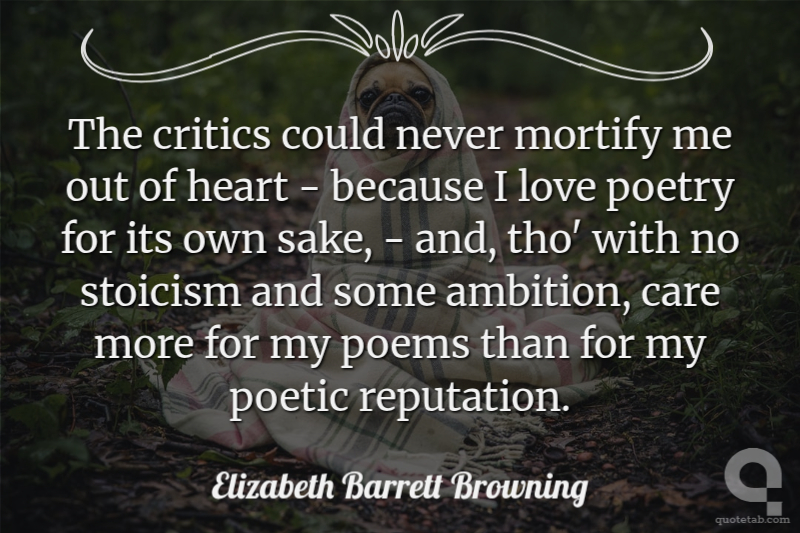 The critics could never mortify me out of heart - because I love poetry for its own sake, - and, tho' with no stoicism and some ambition, care more for my poems than for my poetic reputation.