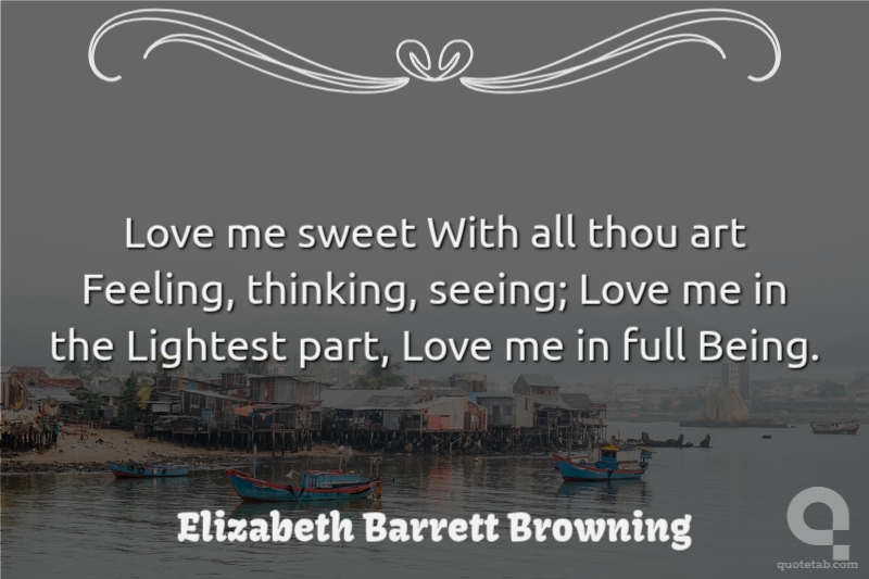 Love me sweet With all thou art Feeling, thinking, seeing; Love me in the Lightest part, Love me in full Being.