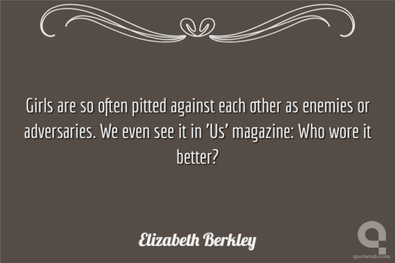 Girls are so often pitted against each other as enemies or adversaries. We even see it in 'Us' magazine: Who wore it better?