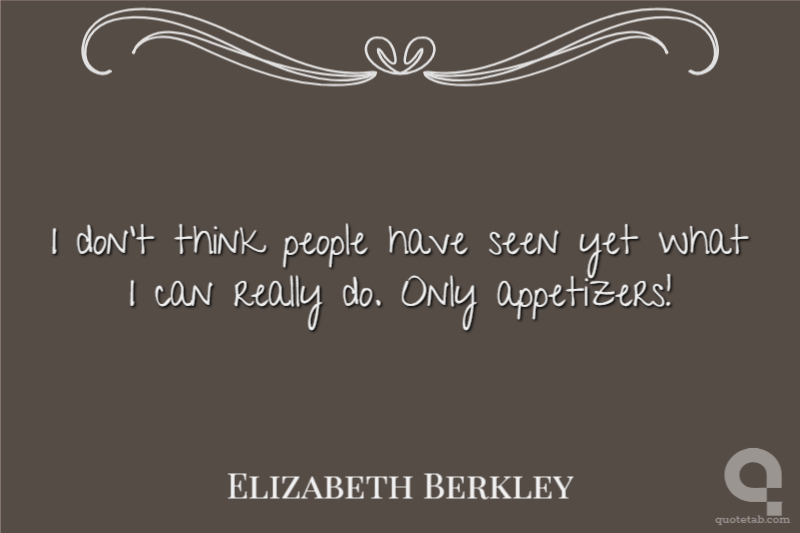I don't think people have seen yet what I can really do. Only appetizers!