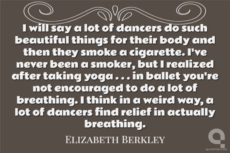 I will say a lot of dancers do such beautiful things for their body and then they smoke a cigarette. I've never been a smoker, but I realized after taking yoga . . . in ballet you're not encouraged to do a lot of breathing. I think in a weird way, a lot of dancers find relief in actually breathing.