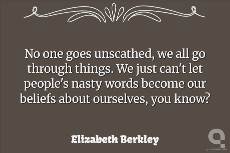 No one goes unscathed, we all go through things. We just can't let people's nasty words become our beliefs about ourselves, you know?