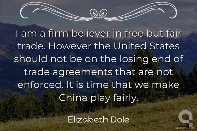 I am a firm believer in free but fair trade. However the United States should not be on the losing end of trade agreements that are not enforced. It is time that we make China play fairly.