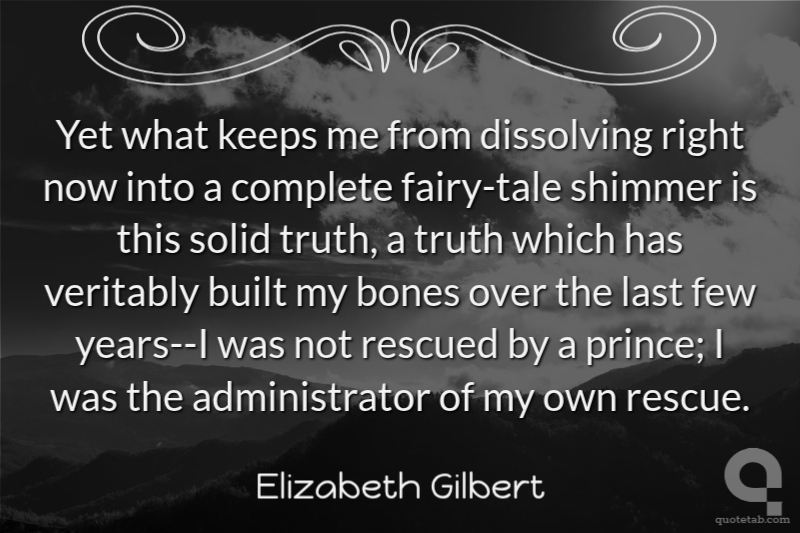Yet what keeps me from dissolving right now into a complete fairy-tale shimmer is this solid truth, a truth which has veritably built my bones over the last few years--I was not rescued by a prince; I was the administrator of my own rescue.