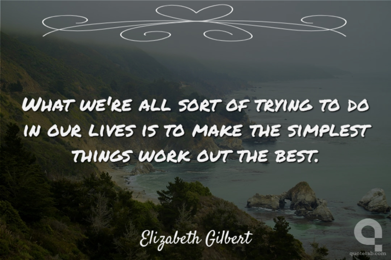 What we're all sort of trying to do in our lives is to make the simplest things work out the best.