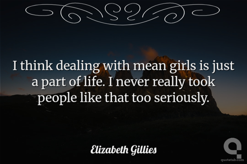I think dealing with mean girls is just a part of life. I never really took people like that too seriously.
