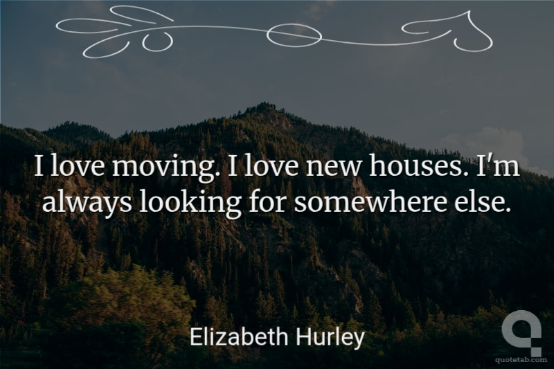 I love moving. I love new houses. I'm always looking for somewhere else.