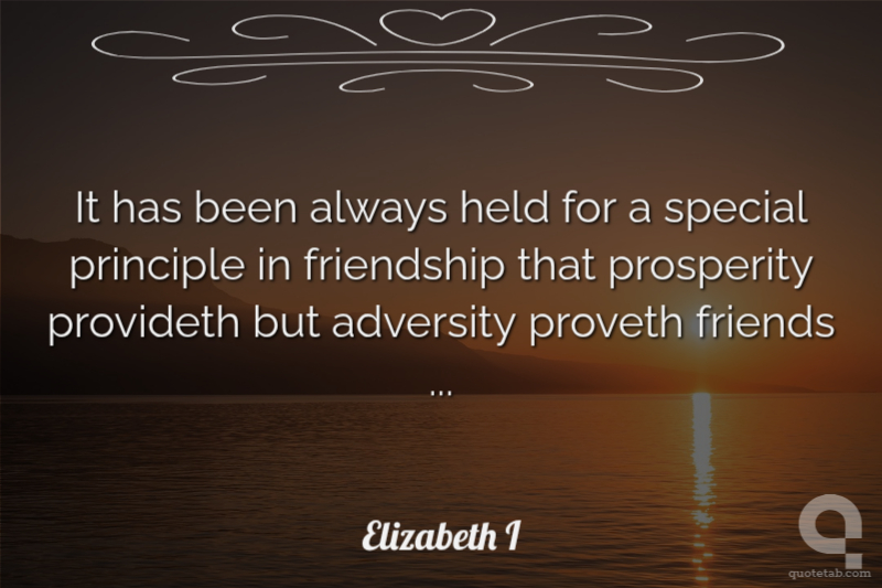 It has been always held for a special principle in friendship that prosperity provideth but adversity proveth friends ...