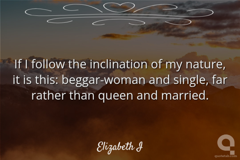 If I follow the inclination of my nature, it is this: beggar-woman and single, far rather than queen and married.