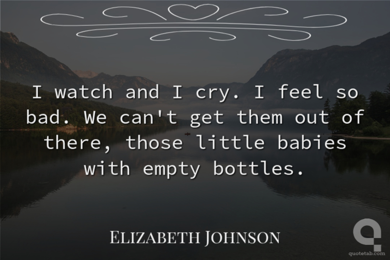 I watch and I cry. I feel so bad. We can't get them out of there, those little babies with empty bottles.