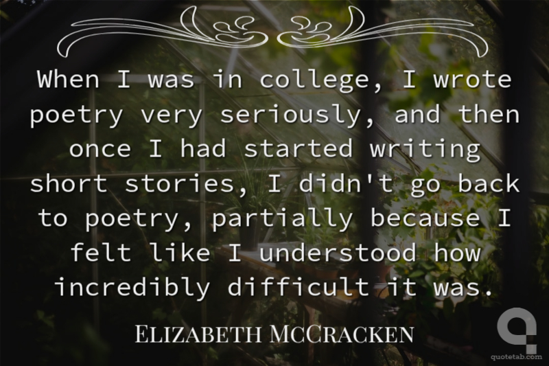 When I was in college, I wrote poetry very seriously, and then once I had started writing short stories, I didn't go back to poetry, partially because I felt like I understood how incredibly difficult it was.