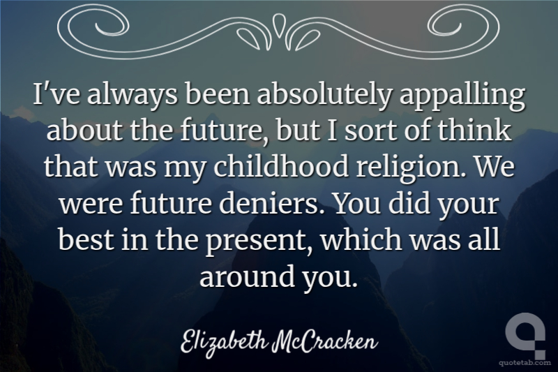 I've always been absolutely appalling about the future, but I sort of think that was my childhood religion. We were future deniers. You did your best in the present, which was all around you.