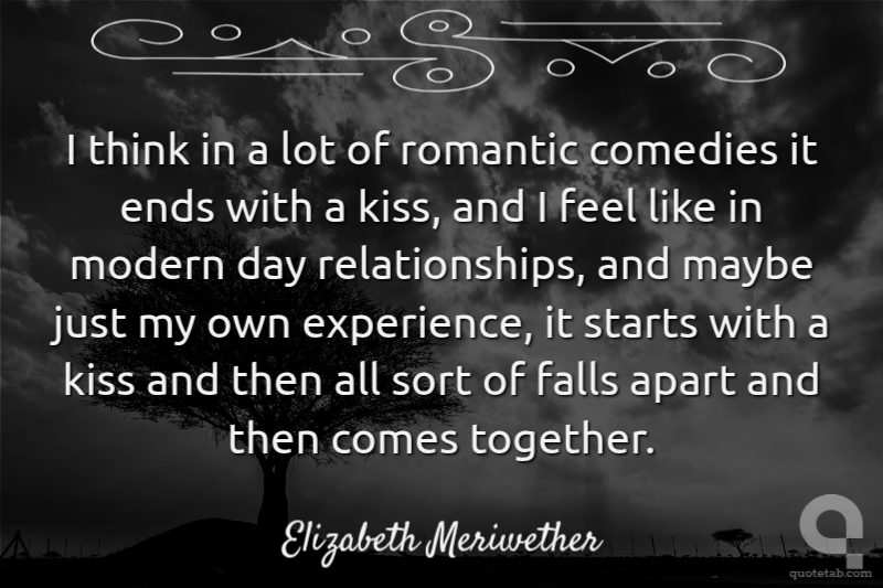 I think in a lot of romantic comedies it ends with a kiss, and I feel like in modern day relationships, and maybe just my own experience, it starts with a kiss and then all sort of falls apart and then comes together.