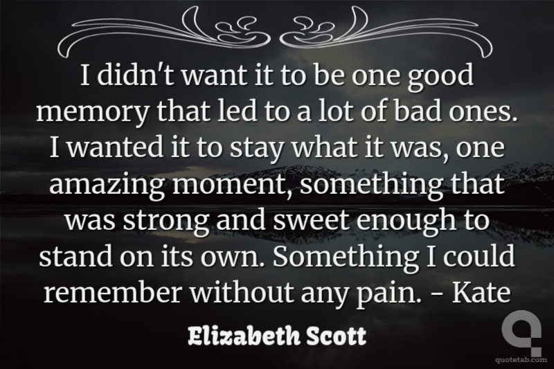 I didn't want it to be one good memory that led to a lot of bad ones. I wanted it to stay what it was, one amazing moment, something that was strong and sweet enough to stand on its own. Something I could remember without any pain. - Kate