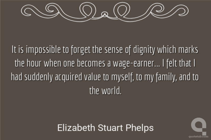 It is impossible to forget the sense of dignity which marks the hour when one becomes a wage-earner... I felt that I had suddenly acquired value to myself, to my family, and to the world.