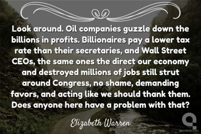 Look around. Oil companies guzzle down the billions in profits. Billionaires pay a lower tax rate than their secretaries, and Wall Street CEOs, the same ones the direct our economy and destroyed millions of jobs still strut around Congress, no shame, demanding favors, and acting like we should thank them. Does anyone here have a problem with that?