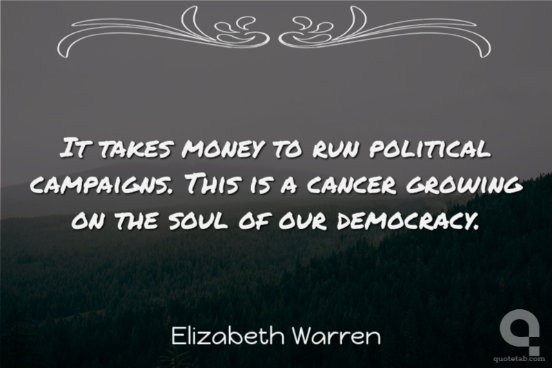 It takes money to run political campaigns. This is a cancer growing on the soul of our democracy.