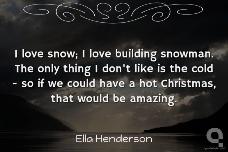 I love snow; I love building snowman. The only thing I don't like is the cold - so if we could have a hot Christmas, that would be amazing.