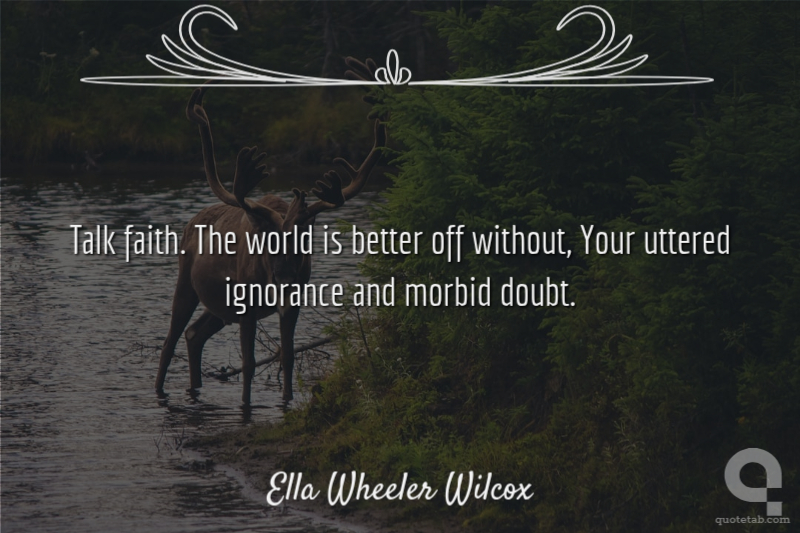 Talk faith. The world is better off without, Your uttered ignorance and morbid doubt.