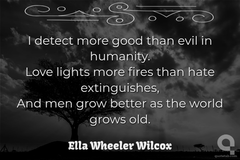 I detect more good than evil in humanity. Love lights more fires than hate extinguishes, And men grow better as the world grows old.