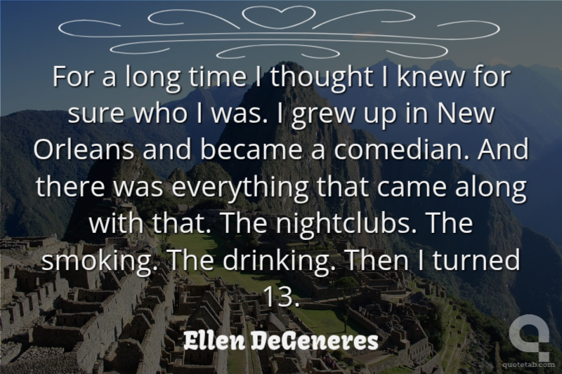 For a long time I thought I knew for sure who I was. I grew up in New Orleans and became a comedian. And there was everything that came along with that. The nightclubs. The smoking. The drinking. Then I turned 13.