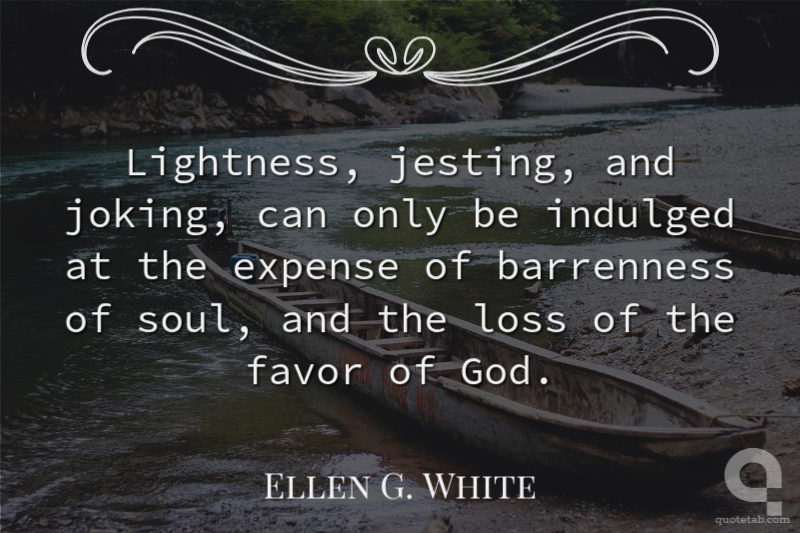 Lightness, jesting, and joking, can only be indulged at the expense of barrenness of soul, and the loss of the favor of God.