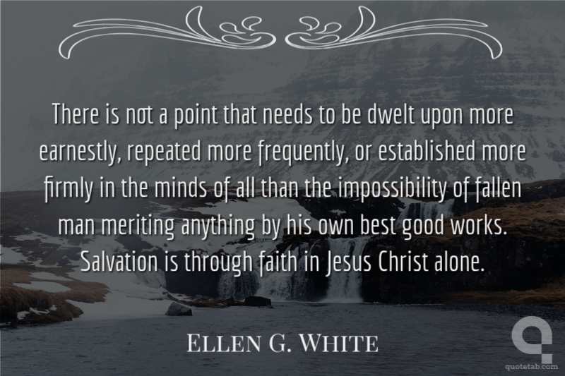 There is not a point that needs to be dwelt upon more earnestly, repeated more frequently, or established more firmly in the minds of all than the impossibility of fallen man meriting anything by his own best good works. Salvation is through faith in Jesus Christ alone.