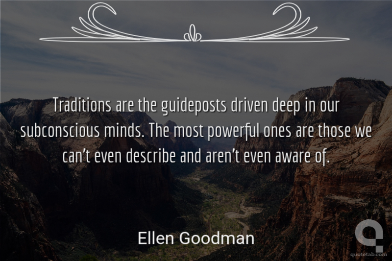 Traditions are the guideposts driven deep in our subconscious minds. The most powerful ones are those we can't even describe and aren't even aware of.