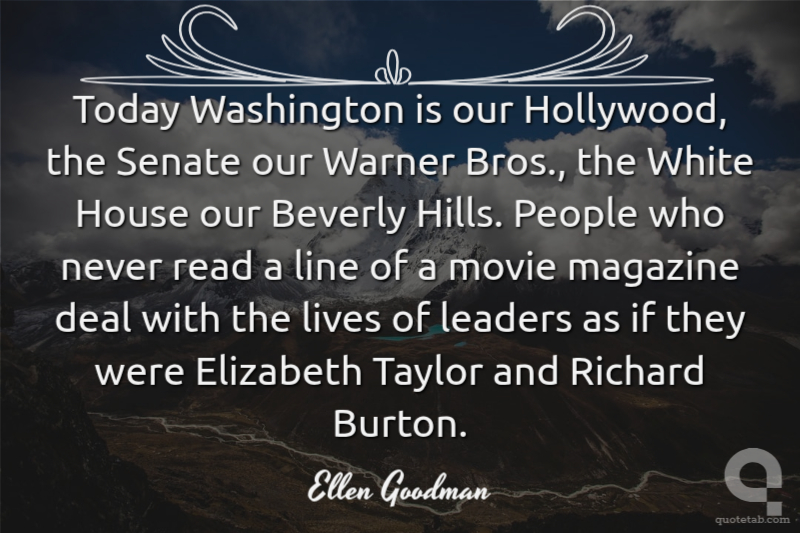 Today Washington is our Hollywood, the Senate our Warner Bros., the White House our Beverly Hills. People who never read a line of a movie magazine deal with the lives of leaders as if they were Elizabeth Taylor and Richard Burton.