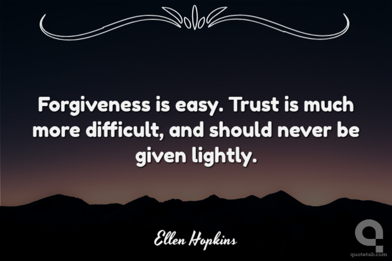 Forgiveness is easy. Trust is much more difficult, and should never be given lightly.